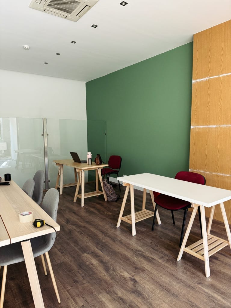 Tom and Reima shared this desire for a third space. Not quite an office, but a space where we could work and hang out, a shared living room. Create the community we were missing. In May they went to view the first space, an office in Lapa, an 18-minute walk from where we live. It had two floors, two toilets, and room for everything we needed.